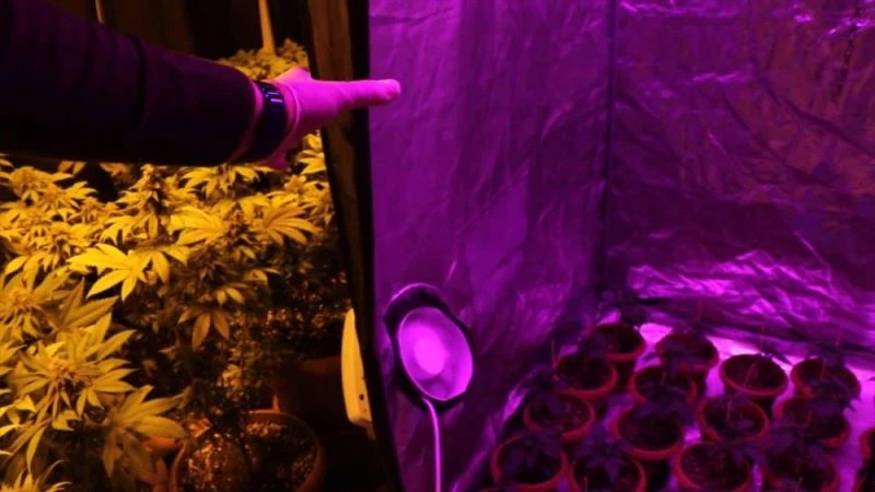 İkamette 572 kök kenevir, 579 gram esrar, uyuşturucu tohumları ile 7 mavi ve mor ışık kaynağı ele geçirildi.