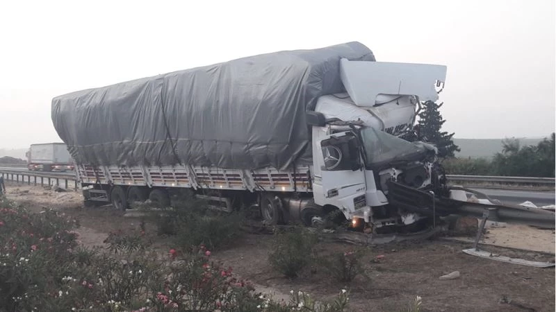 Mersin'de bariyere çarpan tırdaki 2 kişi yaralandı