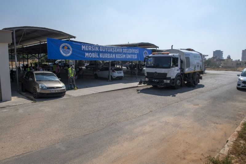 Mersin Büyükşehir Belediyesince, Kurban Bayramı sürecinde 13 ilçede 32 mezbaha ve mobil kesim ünitesiyle hijyenik koşullarda ücretsiz kesim yapılırken, kesim noktalarında ve kentin muhtelif yerlerinde ilaçlama, temizlik ve dezenfeksiyon çalışmalarının aralıksız sürdüğü bildirildi.