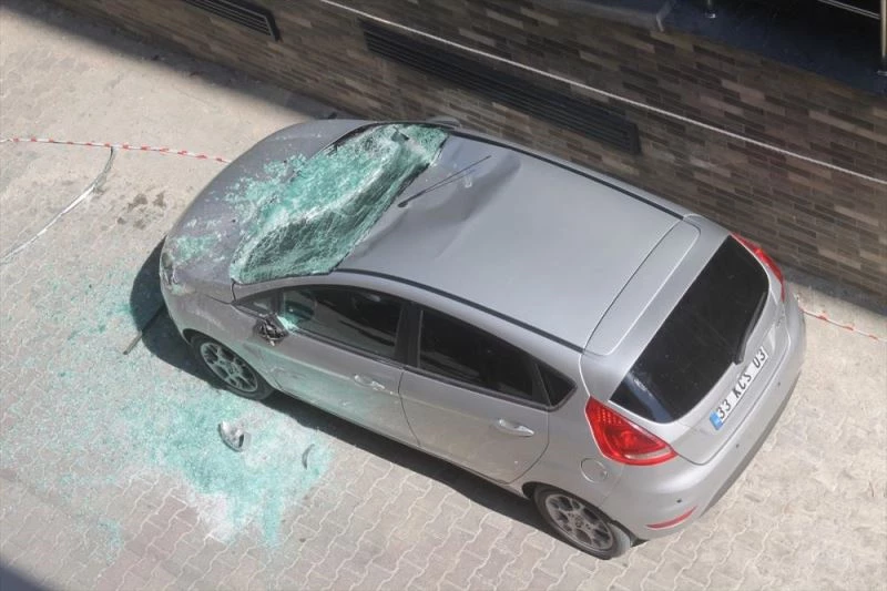 Düşen pencere, park halinde bulunan U.G'ye ait 33 KCS 03 plakalı araca zarar verdi.