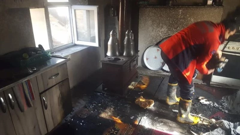 Itfaiye ekiplerinin müdahalesiyle kisa sürede söndürülen yangin, evin bir bölümünde hasara neden oldu.