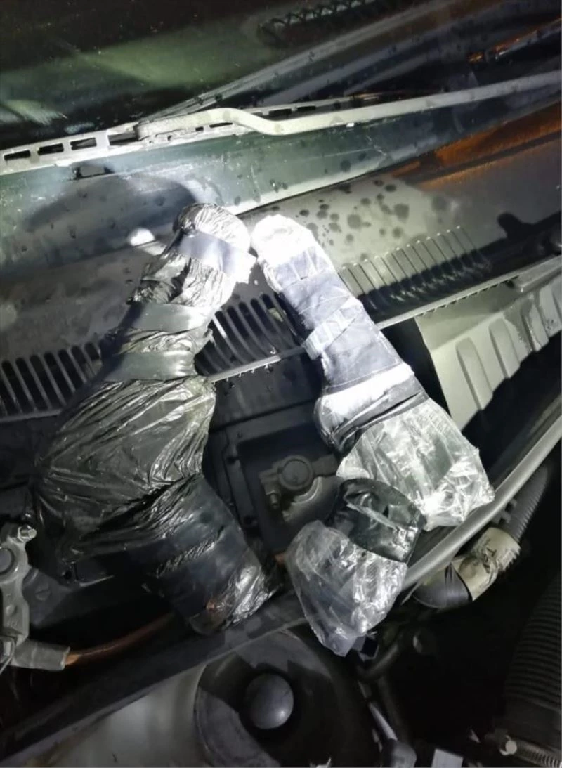 Aramada, aracın motor kaputunun altına gizlenmiş ruhsatsız 2 tabanca ele geçirildi.