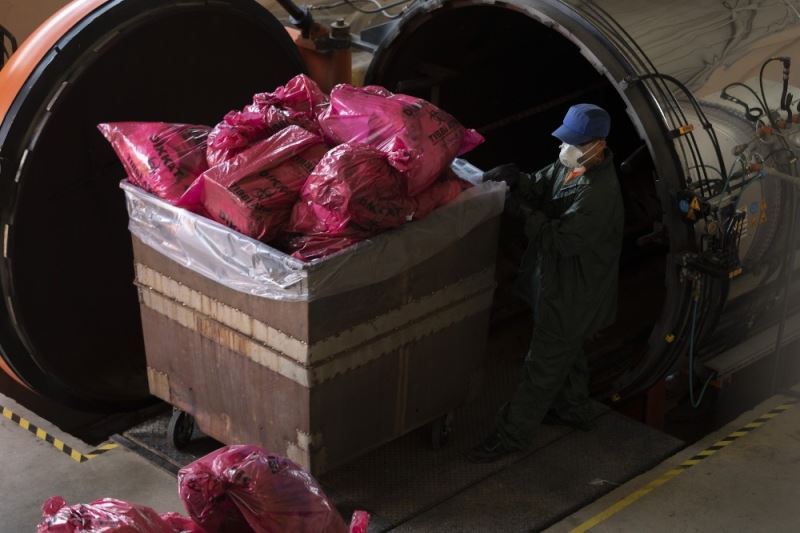 Tıbbi atıklar sterilize edildikten sonra bertaraf ediliyor