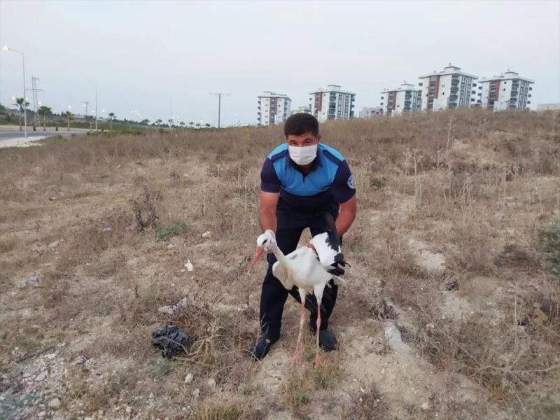 Büyüksehir Belediyesinden yapilan açiklamaya göre, Sehitler Tepesi Mahallesi'nde devriye görevi yapan zabita ekipleri bos bir arazide yarali bir leylek gördü.