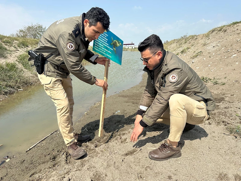 Ekipler, deniz kaplumbağalarının yumurta bıraktığı bölgelerin çevresine uyarı levhası dikti.