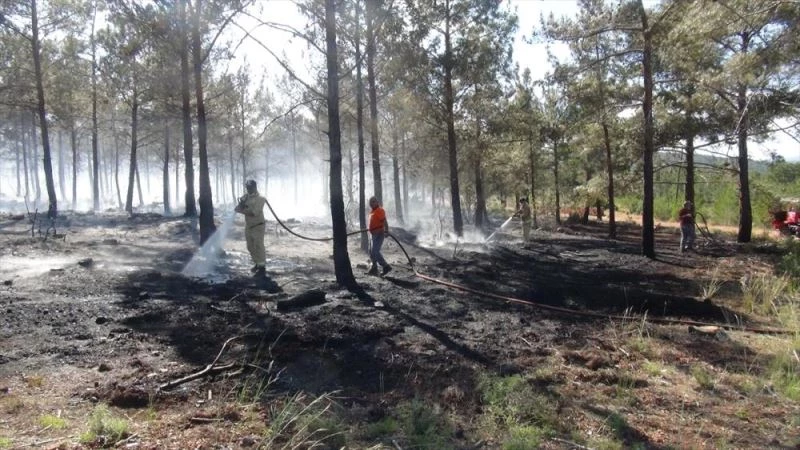 Ekiplerin çalışmasıyla kontrol altına alınan yangında, 2 hektarlık kızılçam ormanı zarar gördü.
