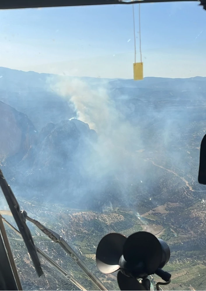 İhbar üzerine bölgeye Orman Bölge Müdürlüğü ekipleri ile 2 helikopter, 7 arazöz ve 1 su ikmal aracı sevk edildi.
