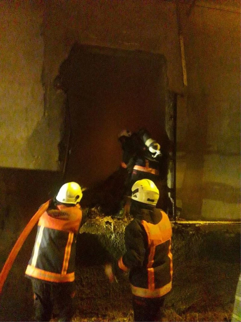 Kısa sürede söndürülen yangında samanlık kullanılamaz hale geldi.