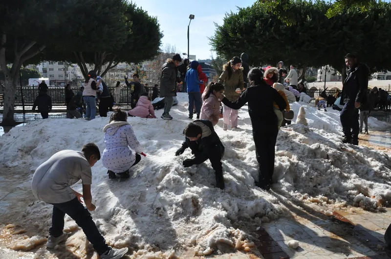 Mersin'de çocuklar Toros Dağları'ndan getirilen karla eğlendi