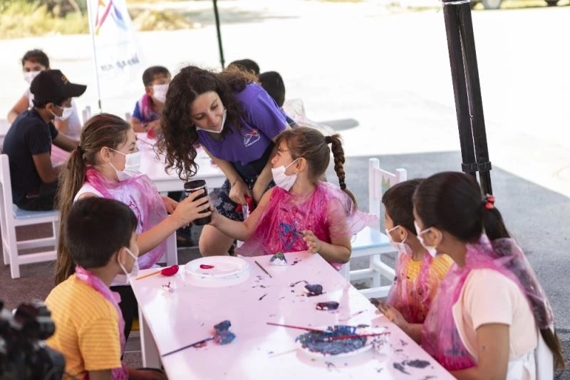 Kadın ve Aile Hizmetleri Dairesi Başkanlığı bünyesinde çalışan avukat Nida Gamsız, psikolog Dilan Dinler, sosyal hizmet uzmanı Özlem Yaşar ve çocuk gelişimcisi Gülçin Atar, çocuk işçi çalıştırmanın hukuki, psikolojik, pedagojik ve sosyolojik boyutlarına dair ailelere bilgi verdi. Etkinlik kapsamında aileler bilgilendirilirken, çocuklar da kendileri için hazırlanan alanda keyifli aktivitelere katıldı. Büyükşehir Belediyesi’nin kreş öğretmenlerinden Tuğba İdikurt Özdemir ve Bahar Aras eşliğinde çocuklar keyifli vakit geçirdi. Öğretmenler, çocuklara karton bardaklardan marakas yaptırdı. Çocuklar yaptıkları marakasları rengarenk boyalarla süsleyip ritim tuttu. Ayrıca “Öykücü Abla” olarak da tanınan hikaye anlatıcı Çağrı Burcu Yücesoy, çocuklara öykü anlattı. Çember oyununda doyasıya zıplayan çocuklara, Büyükşehir personeli süt ve şeker de hediye etti. Nida Gamsız, etkinlikle farkındalık oluşturmayı amaçladıklarını belirterek, “Biz aslında çocuk işçiliğine farkındalık çalışması olarak bugünü organize ettik. Çocuklarımızla güzel bir gün geçirmek, onlara çocuk haklarını anlatmak, bir farkındalık çalışması oluşturmak istiyoruz. Velilerimiz de burada. Onlarla güzel bir gün geçireceğiz, hem çocuk hakları konuşulacak, hem dans eşliğinde bazı oyunlarımız olacak” dedi.