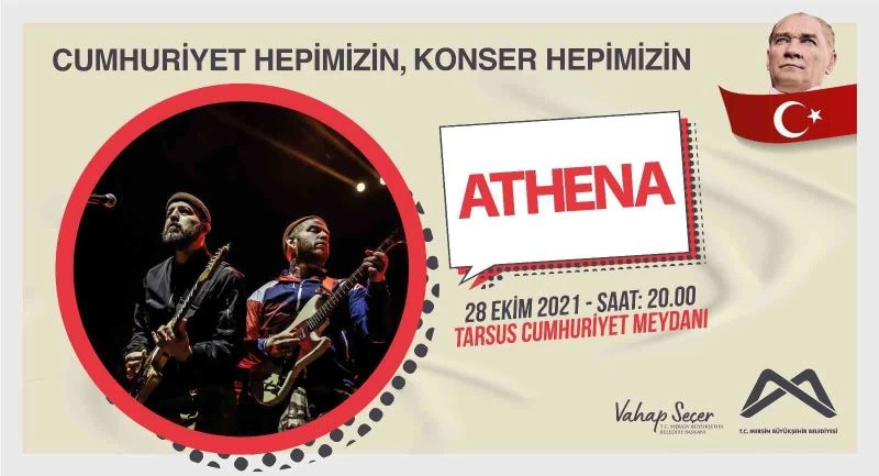 Konser programı kapsamında Athena, 28 Ekim Perşembe günü saat 20.00’de Tarsus Cumhuriyet Meydanı’nda sevenleriyle buluşacak. Athena’dan önce ise yerel müzik gruplarından Grup Cosmossahne alacak. 29 Ekim Cuma günü ise Mersin’in Yenişehir ilçesindeki Özgecan Aslan Meydanı’nda saat 20.00’de Necati ve Saykolar, saat 22.00’de ise Mor ve Ötesi Mersinlilerle buluşacak.