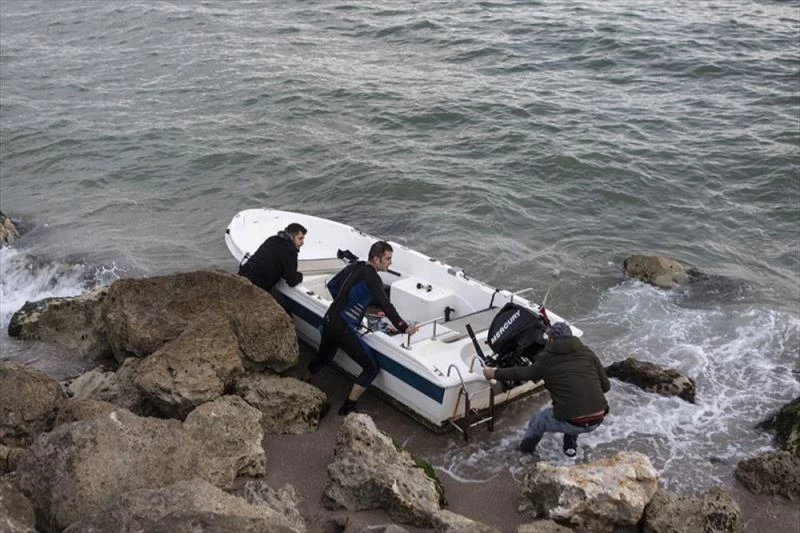 Bu sırada martıyı kurtarmak için bölgeye giden 2 kişi ise teknelerinin motor kısmına başka bir misina takılmasından dolayı denizde mahsur kaldı.