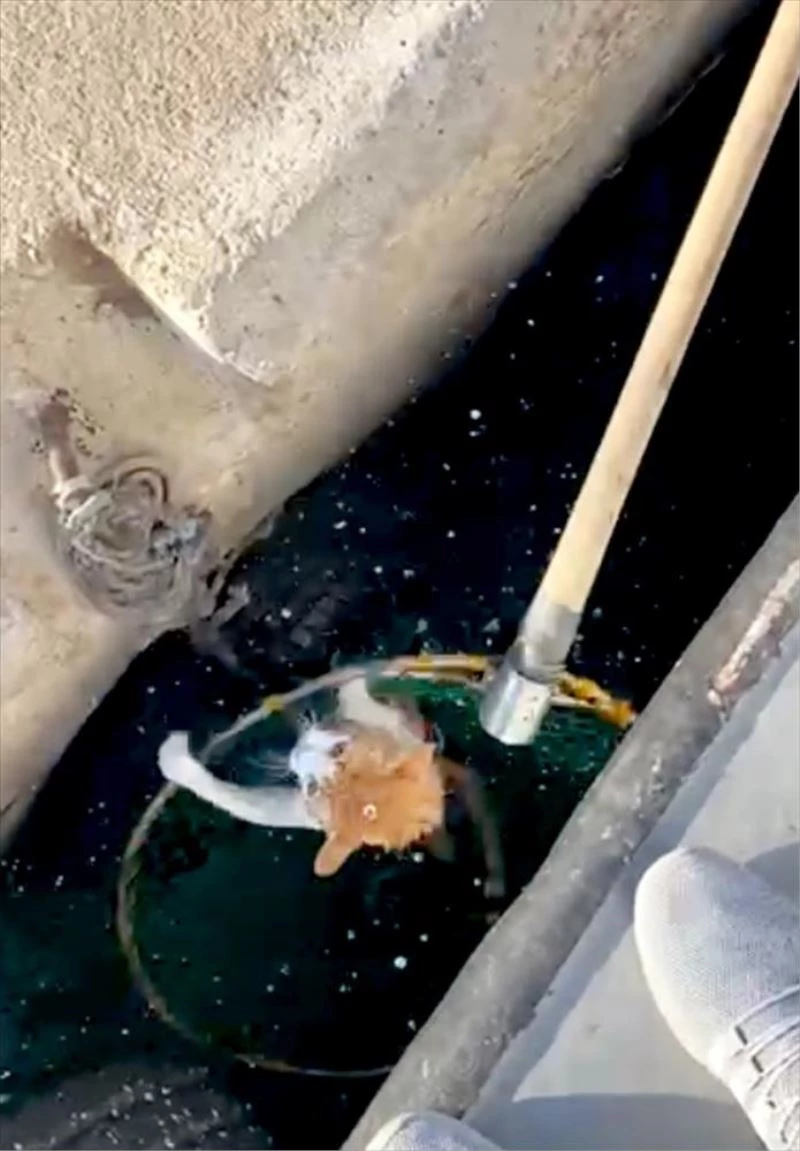 MERSİN - Mersin'in Erdemli ilçesinde denize düşen kedi, balıkçılar tarafından kurtarıldı.
