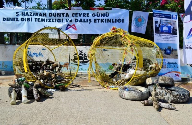Sahil Güvenlik Akdeniz Bölge Komutanligi ve Mersin Büyüksehir Belediyesi Itfaiye Dairesi Baskanligi bünyesindeki Afet Arama ve Kurtarma Sube Müdürlügü'ne bagli dalgiç ekiplerinin de katildigi etkinlikte denizden çöp toplandi.