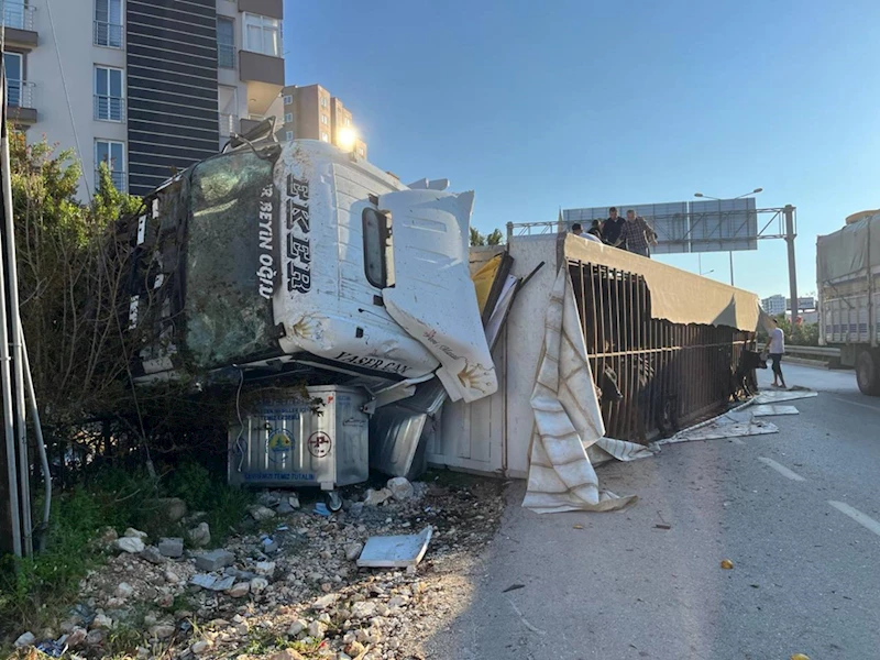 MERSİN - Mersin'in Erdemli ilçesinde devrilen büyükbaş hayvan yüklü tırın sürücüsü yaralandı.
