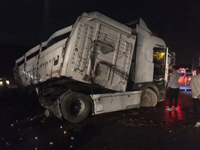 M.T. idaresindeki 26 HN 595 plakalı meyve ve sebze yüklü tır, Tarsus-Adana-Gaziantep (TAG) Otoyolu Akgedik mevkisinde henüz belirlenemeyen nedenle yol ortasındaki bariyerlere çarpıp devrildi.