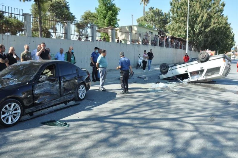 MERSİN - Mersin'de, park halindeki araca çarptıktan sonra devrilen otomobilin sürücüsü hastaneye kaldırıldı.