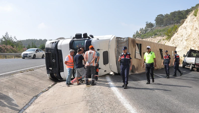 Mehmet Salih Ulukale idaresindeki 60 angus türü büyükbaşın yüklü olduğu 07 BBY 407 plakalı tır, Çamdüzü mevkisinde, sürücüsünün direksiyon hakimiyetini kaybetmesi sonucu devrildi.