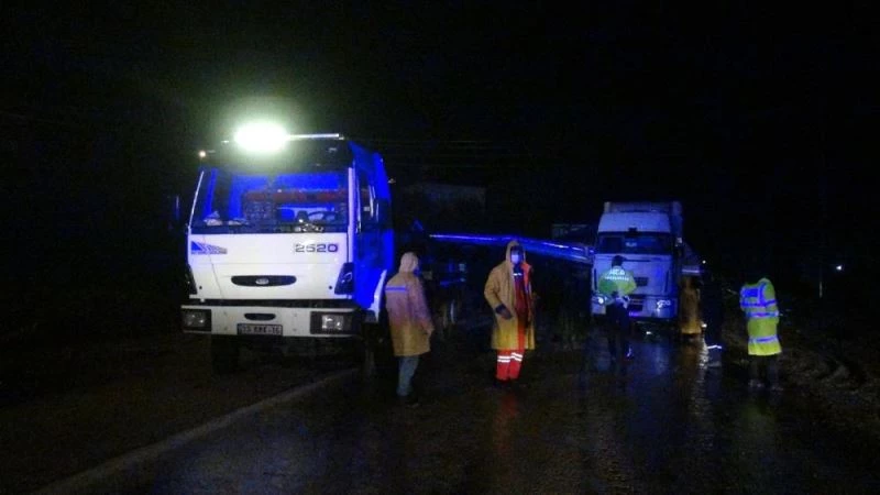 Halil A'nın kullandığı 31 AFN 812 plakalı tır, Değirmendere mevkisinde sağanak nedeniyle kontrolden çıkarak devrildi.