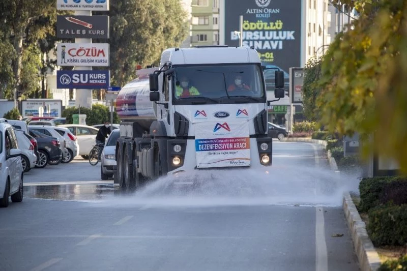 Mersin Büyükşehir Belediyesince, salgın nedeniyle 10 aydır sürdürülen dezenfeksiyon işlemlerinin hız kesmeden devam ettiği bildirildi.