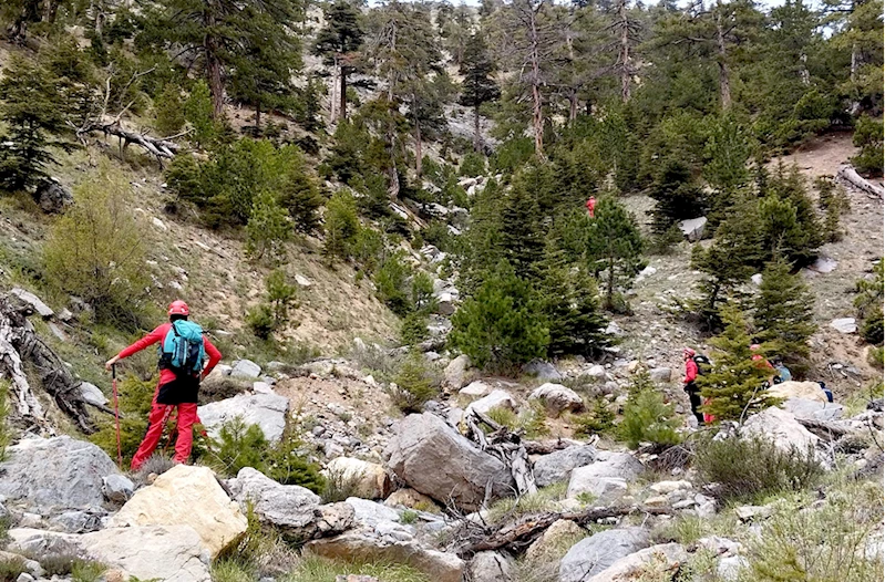 İl Afet ve Acil Durum Müdürlüğü (AFAD) koordinesinde dağlık alanda yürütülen çalışmaya, jandarma ve Büyükşehir Belediyesi itfaiye ekipleri de destek veriyor.