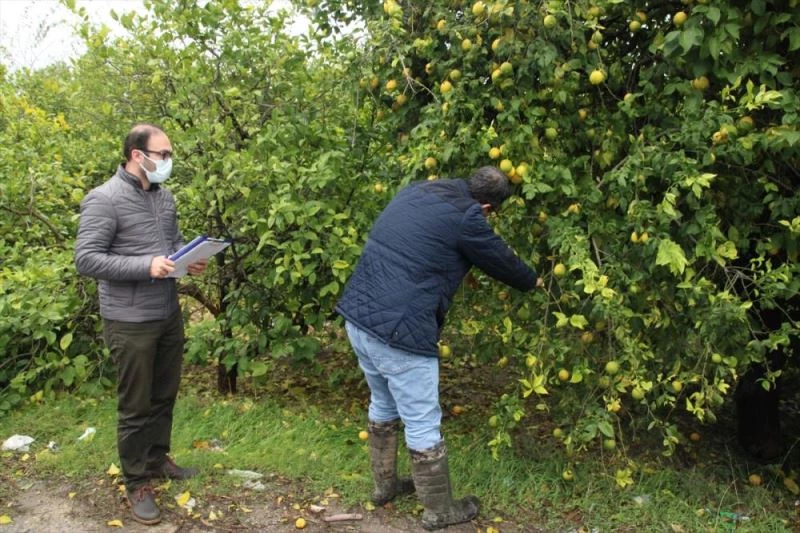 MERSİN (AA) - Mersin'in Erdemli ilçesinde, dün etkili olan kuvvetli yağış, fırtına ve doludan etkilenen tarım arazilerinde hasar tespit çalışması yapılıyor.