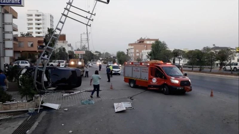 Kutlay Dogdu idaresindeki 33 VB 163 plakali otomobil, Mersin-Antalya kara yolunda sürücüsünün direksiyon hakimiyetini kaybetmesi sonucu bir otelin girisindeki elektrik diregine çarpti.