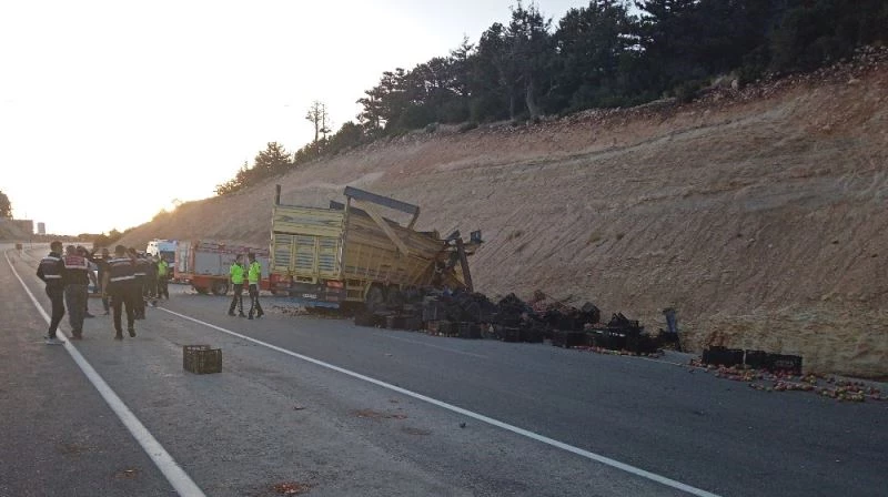Mersin’in Mut ilçesinde elma yüklü kamyonun devrildiği kazada sürücü hayatını kaybetti.