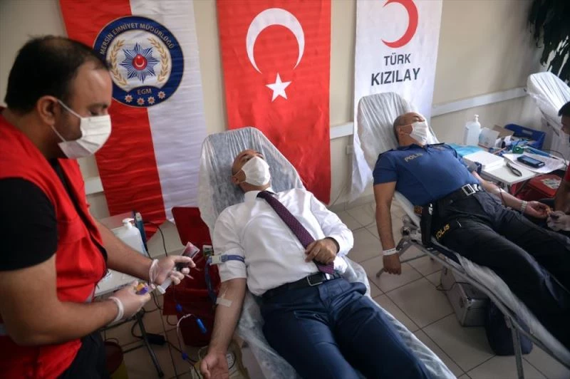MERSIN (AA) - Mersin Il Emniyet Müdürü Mehmet Sahne ve emniyet personeli, kan bagisinda bulundu.