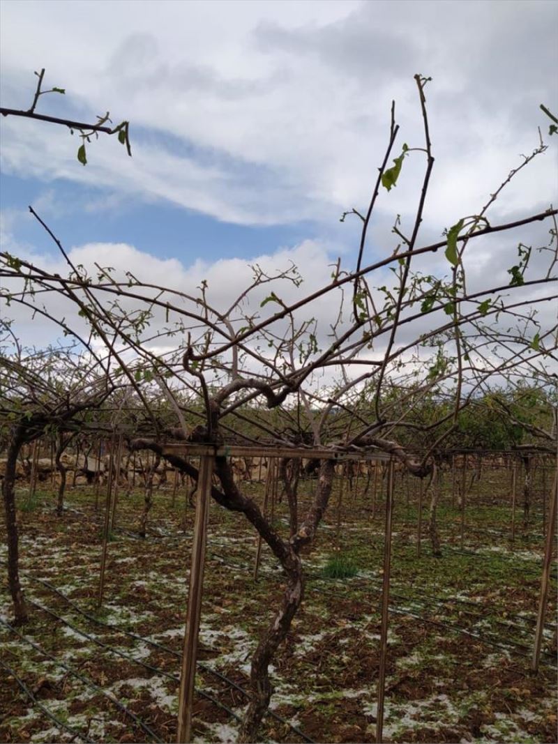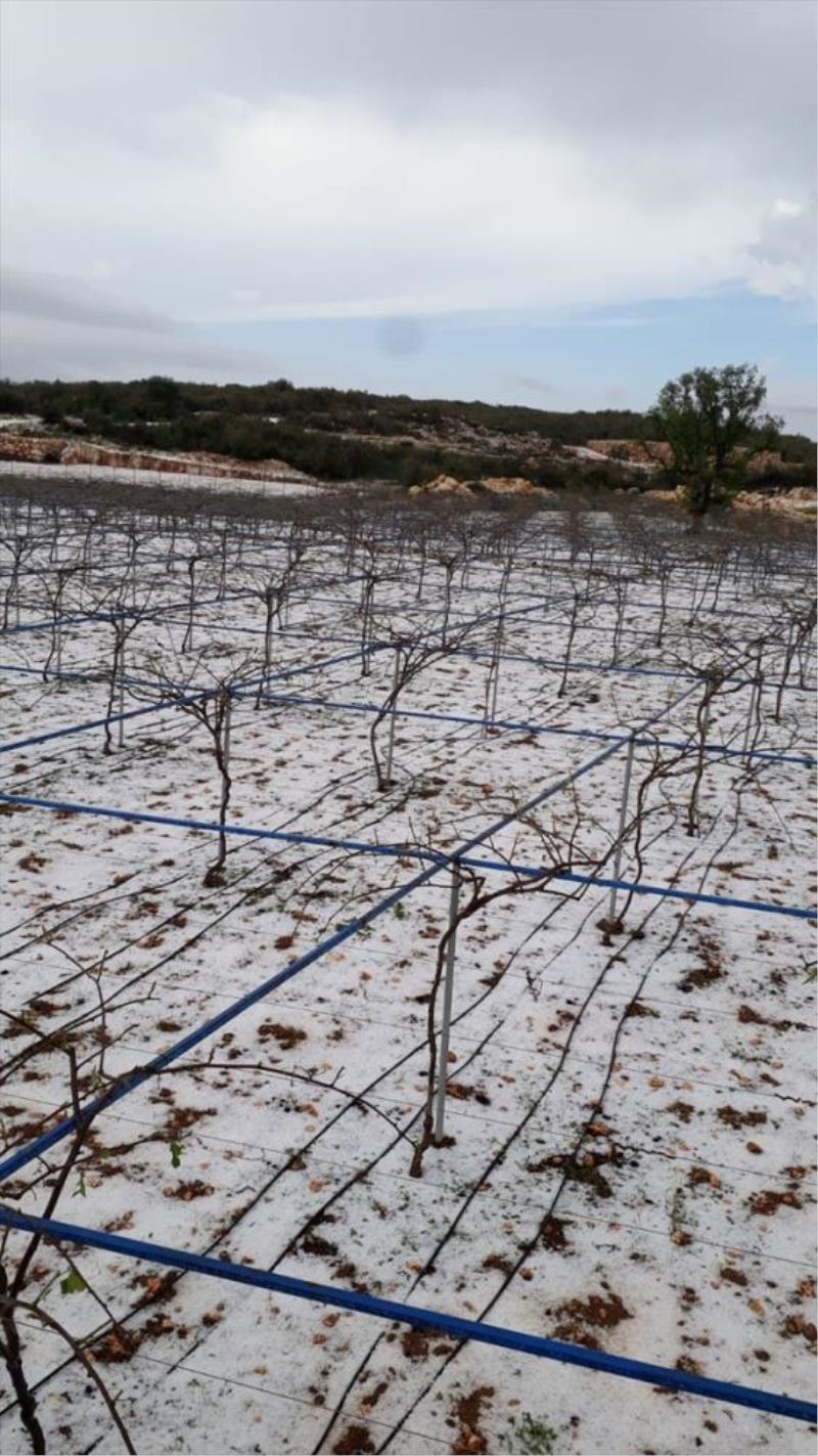 Erdemli ilçesi Esenpinar Mahallesi'nde dolu, sebze ve meyve ekili arazilere zarar verdi.