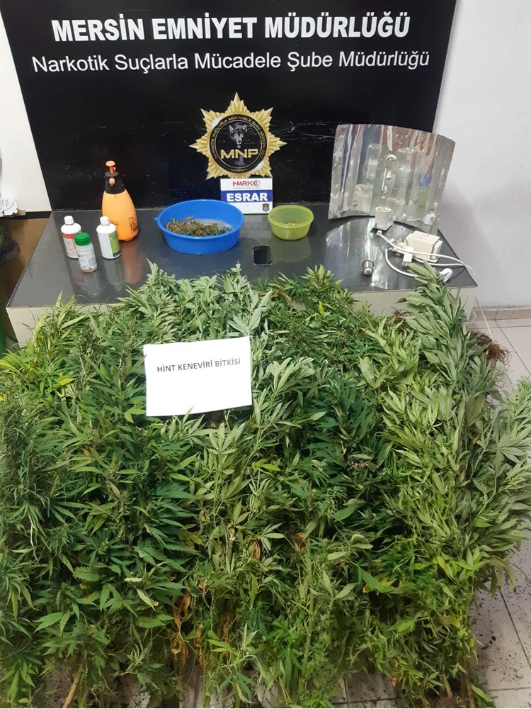 MERSİN - Mersin'in Mezitli ilçesinde 37 kök Hint keneviri ele geçirildi, 2 şüpheli gözaltına alındı.