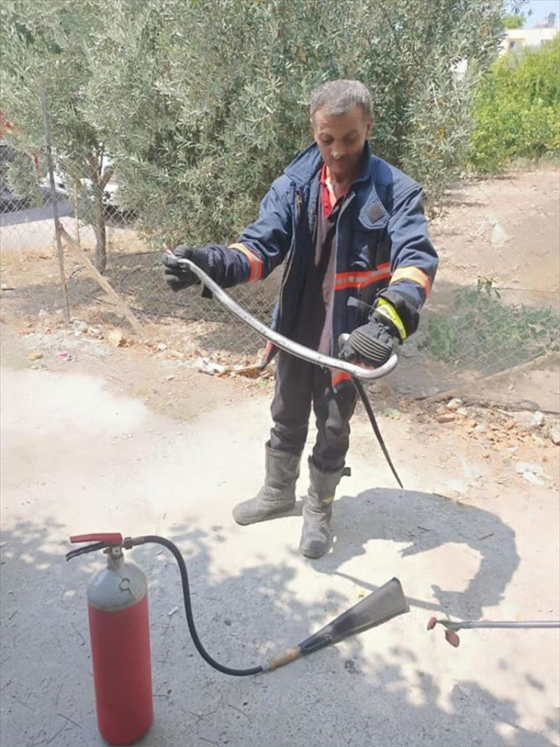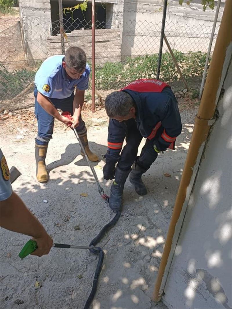 Kargıpınarı Mahallesi'ndeki evlerinin mutfağında yaklaşık 2 metrelik yılan gören ev sahipleri, durumu Büyükşehir Belediyesine Davultepe İtfaiye Grup Amirliği ekibine bildirdi.