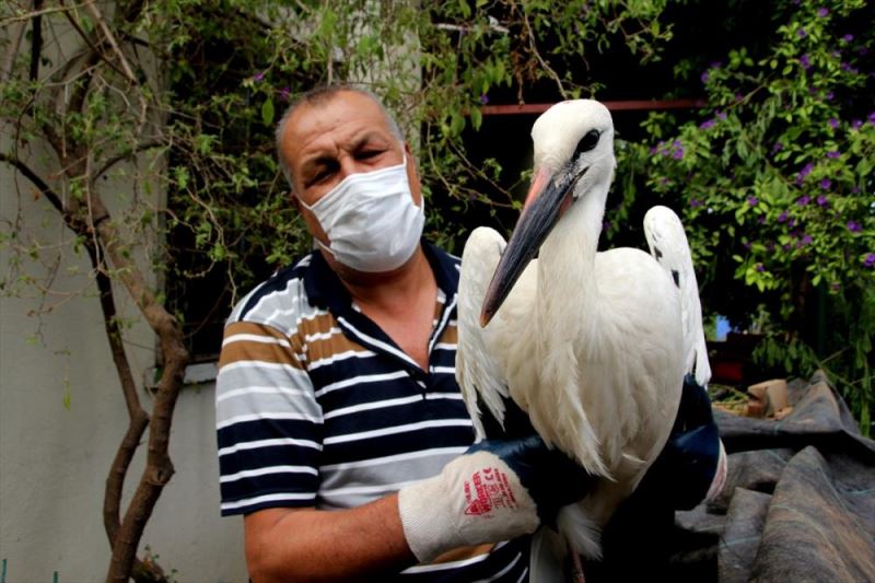 MERSIN (AA) - Mersin'in Erdemli ilçesinde, göç yolunda yorgun düserek bir bahçeye inen leylek gücünü toparlayabilmesi için bakima alindi.
