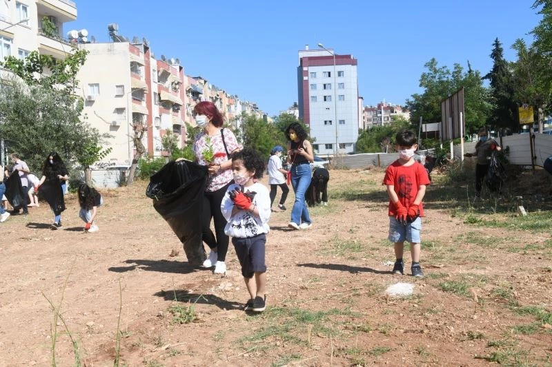 Gönüllüler daha sonra park ve boş arazide çevre temizliği yaparak çevre temizliğine dikkat çektiler.