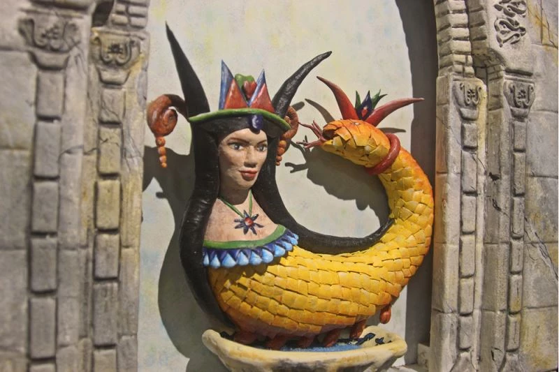 Model Doğa Bekleriz'in kreasyonunu yaptığı "Güçlü Kadınlar ve Şahmeran" temalı koleksiyon, enstitünün atölyelerindeki çalışmayla kıyafetlere dönüştürüldü.