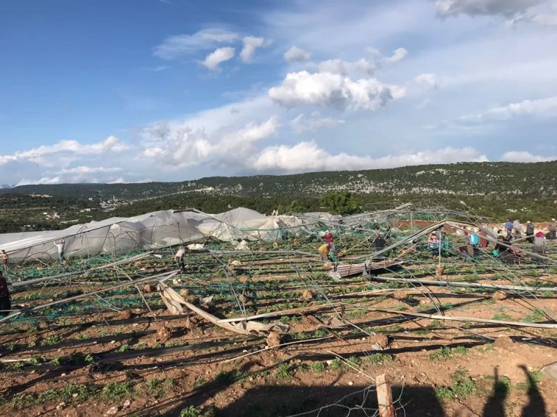 Hortum nedeniyle Kızılen Mahallesi'nde bazı seralar yıkıldı, ürünler zarar gördü.