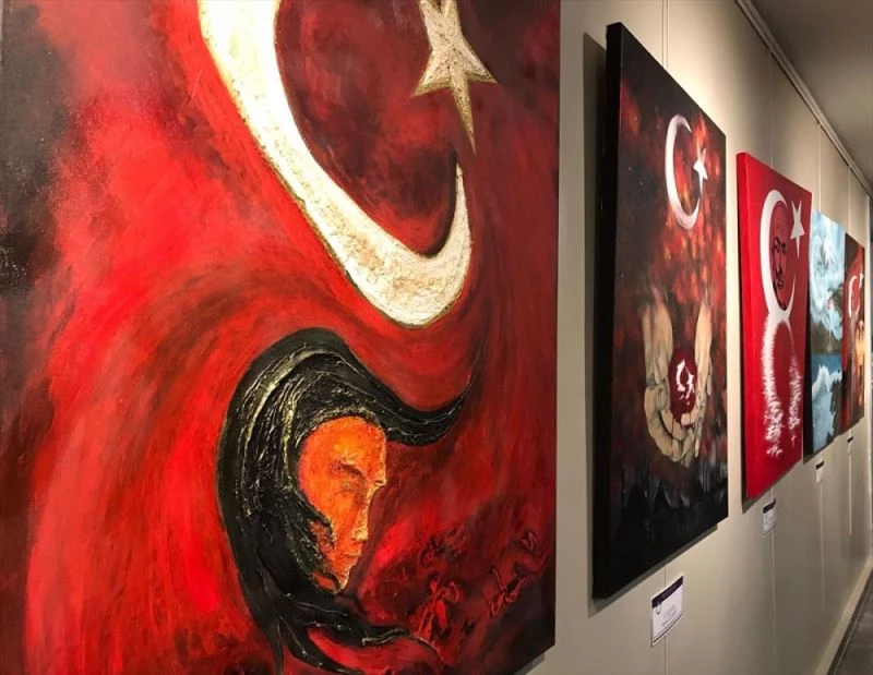 Sergide, 41 görsel sanatlar öğretmeninin, marşın kıtalarını yorumlayarak hislerini aktardıkları 41 eser yer aldı.