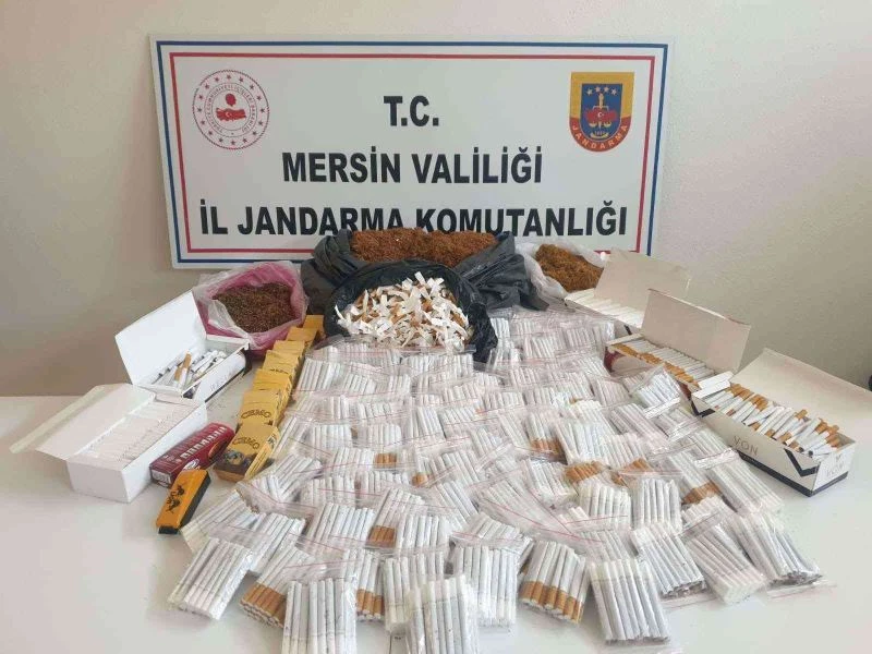 İl Jandarma Komutanlığından yapılan açıklamaya göre, Tarsus ve Gülnar ilçelerinde kaçak sigara sevkiyatı ve satışı yapıldığı yönünde bilgi alan ekipler, şüphelilerin yakalanmasına yönelik çalışma başlattı. Yapılan çalışmaların ardından düzenlenen operasyonda, 2 şüpheli gözaltına alınırken, şüphelilerle birlikte 2 bin 800 paket gümrük kaçağı sigara, 950 adet boş makaron, 2 bin 500 adet dolu makaron, 3 kilo 380 gram kıyılmış tütün ile 2 adet makaron doldurma aparatı ele geçirildi.