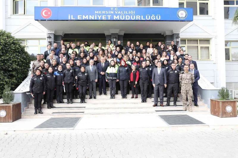 Mersin İl Emniyet Müdürü Mehmet Aslan, 8 Mart Dünya Kadınlar Günü dolayısıyla kadın polislere karanfil ve teşekkür belgesi verdi.