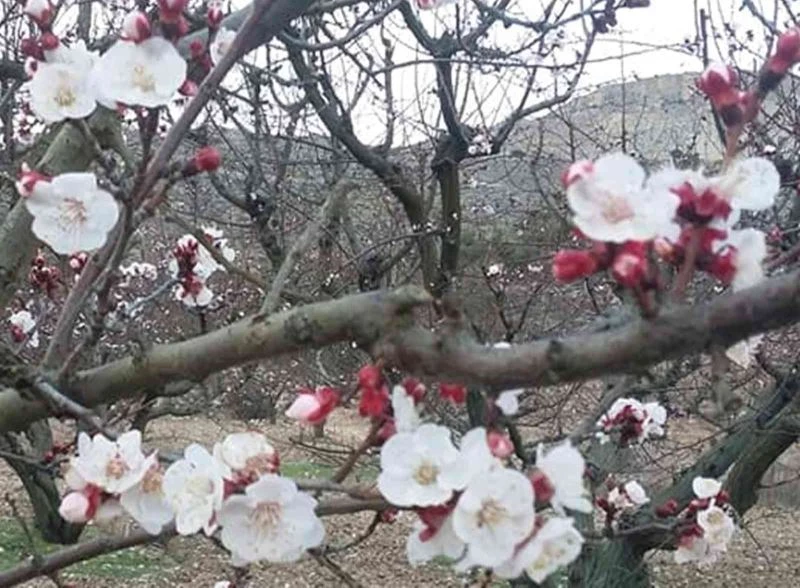 Havaların ılıman geçmesi sebebiyle sıcaklığın 15 derecenin üzerine çıktığı ilçede, kayısı ağaçları çiçek açınca seyirlik görüntü oluştu.