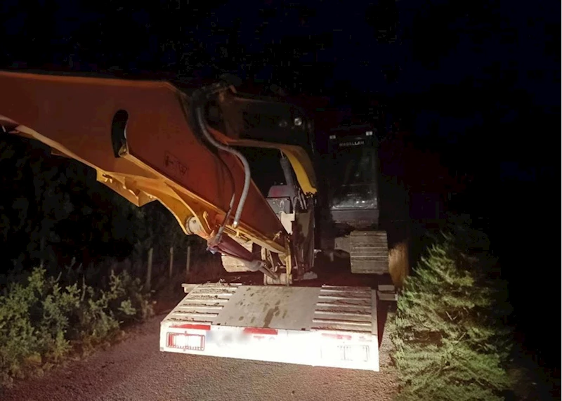 Şüphelilerin kazı yaparken kullandıkları kepçeye el konuldu.