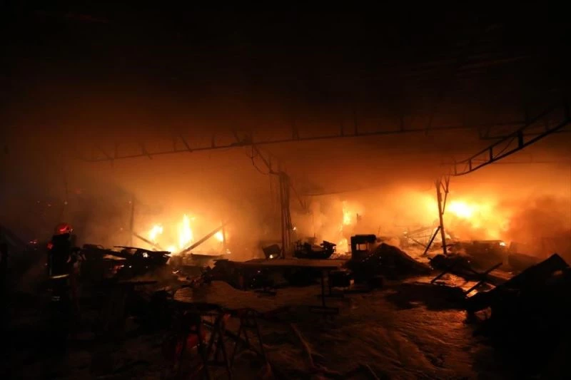 İtfaiye ekiplerinin uzun uğraşları sonucu söndürülen yangın atölyede maddi hasara yol açtı.