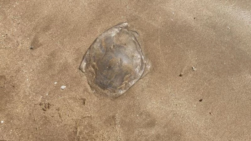 MERSİN - Mersin'in Erdemli ilçesindeki Kızkalesi sahilinde, ilk incelemede zehirli olduğu değerlendirilen ölü denizanası vurdu.