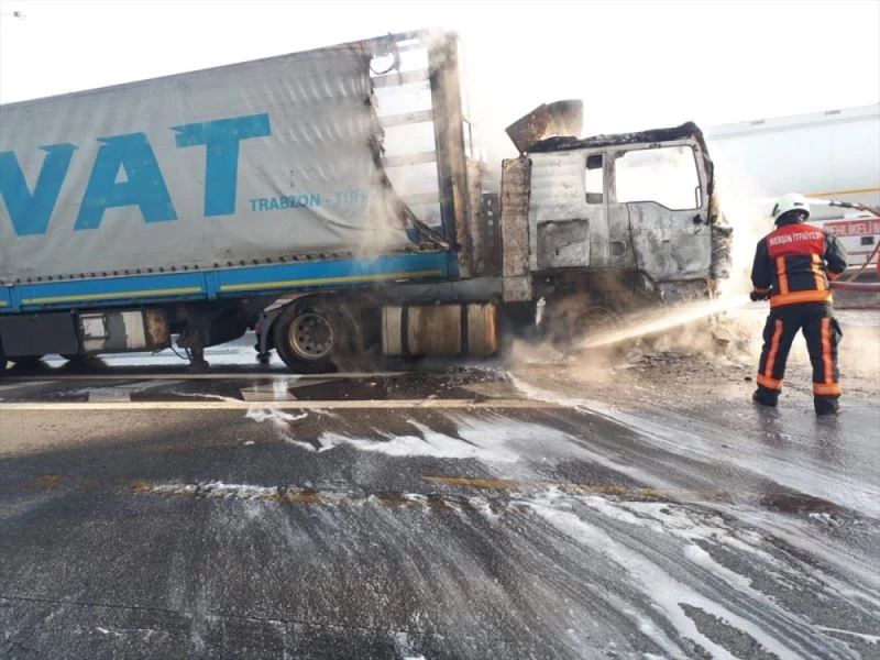 Alinan bilgiye göre, Güzel Kaçmaz'in kullandigi 61 K 0624 çekici plakali tir, Tarsus-Pozanti yolunda henüz belirlenemeyen bir nedenle yanmaya basladi.