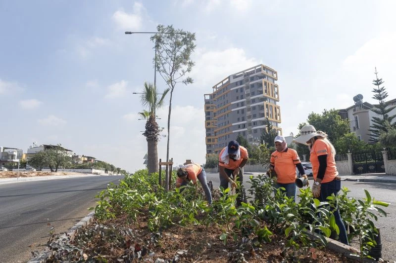 Ekipler, Adnan Menderes Bulvarı ve 4. Çevreyolunda toprak ıslahı, mevsimlik çalı ve çiçek dikimi, tesviye ve yeşil alan oluşturma çalışmaları yürütüyor. Hizmete yeni açılacak 4. Çevreyolundaki refüjde çalışmalarını sürdüren ekipler, euonymus japonica, aurea, photinia fraseri, viburnum lucidum, loropetalum chinense, lagerstroemia indica, nerium oleander nana, polygala myrtifolia ve grevillea robusta türlerinin dikimini yapıyor.