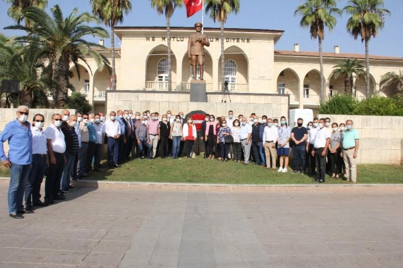 Törende, Mersin Muhtarlar derneği Başkanı Gülgen ile dört merkez ilçede kurulan muhtarlar derneklerinin başkanları, Atatürk Anıtına çelenk sundu. Tören, saygı duruşu ve İstiklal Marşının okunmasının ardından sona erdi.
