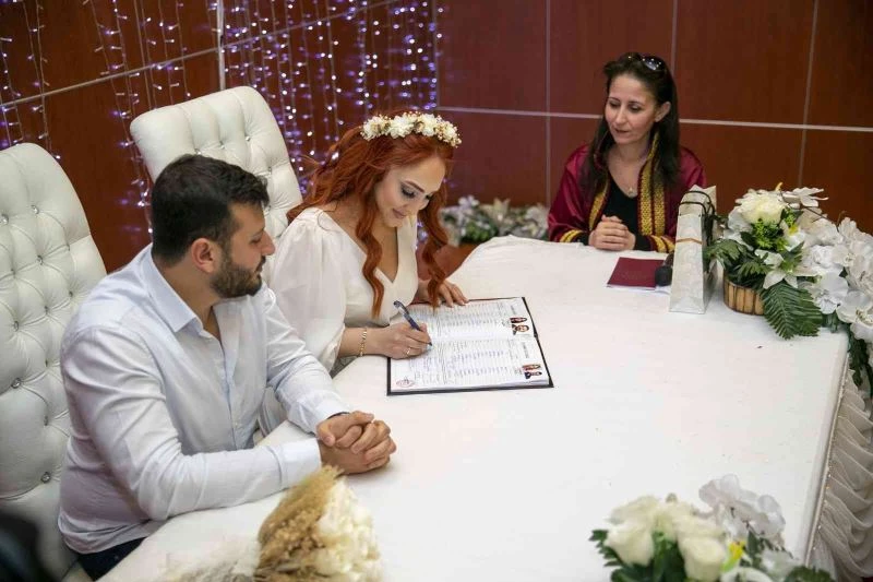 Mersin Büyükşehir Belediyesi nikap salonlarında, dünya evine girmek için 02.02.2022 tarihini seçen çiftlerin yoğunluğu yaşandı. En özel günlerini özel bir tarihle taçlandırmak isteyen 7 çift, birlikteliğe Büyükşehir Belediyesi Kongre Merkezi’nde imza attı. Mutluluğa ‘evet’ diyen Gaye Göksel, “Bizim için bu tarih çok önemliydi. Özellikle bu tarih için çok çabaladık. Herkese nasip olur inşallah” dedi.
