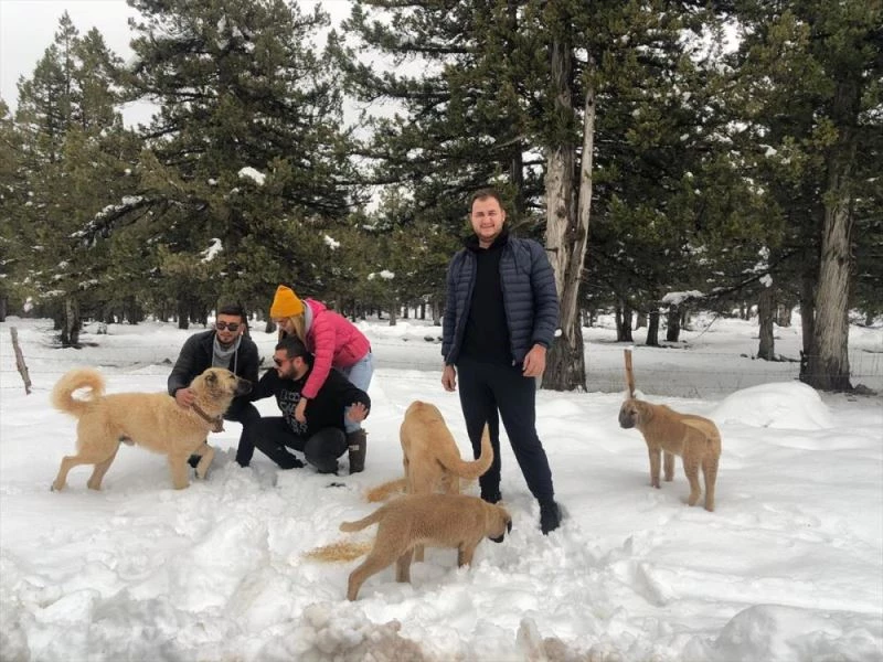 Karla kaplı alanlara çıkan off-road sporcuları, yanlarında getirdikleri yemleri, belirli noktalara bıraktı.