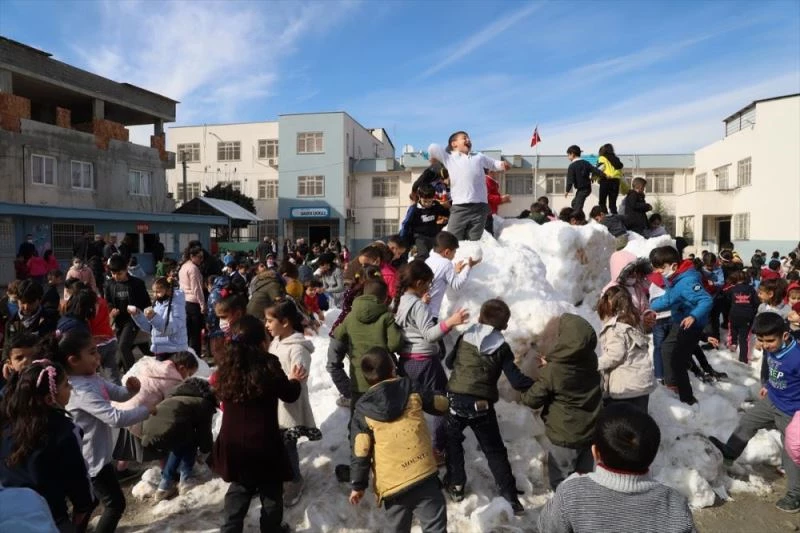 MERSİN - Mersin'in Akdeniz ilçesinde, yarıyıl tatilinin ardından okullarına dönen öğrencilere Toros Dağları'ndan kamyonlarla taşınan karla sürpriz yapıldı.