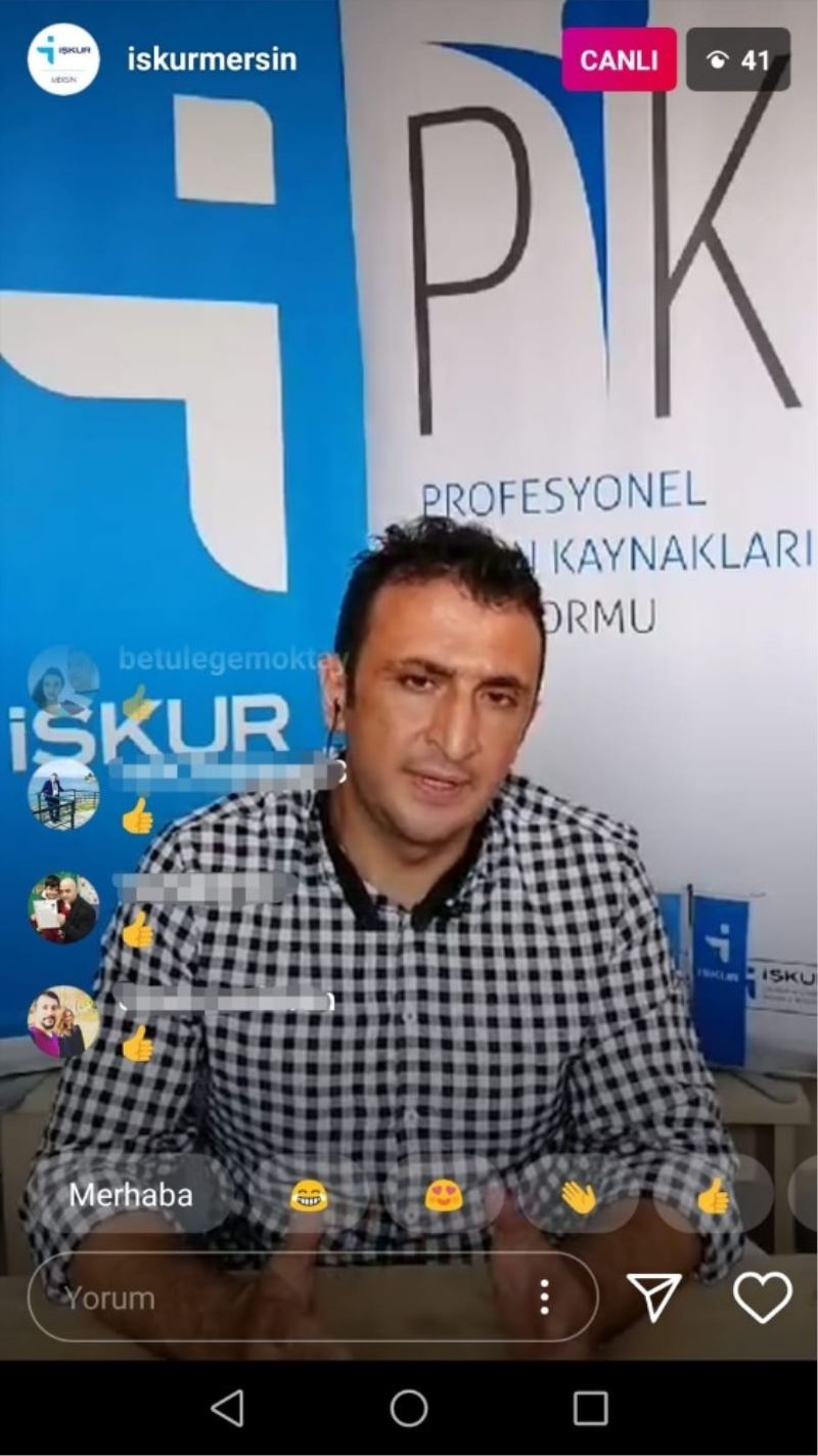 İŞKUR İl Müdürlüğü kurumsal instagram kanalında canlı yayında gerçekleştirilen seminere, Mersin Ticaret ve Sanayi Odası, Mersin Tarsus Organize Sanayi Bölgesi, Profesyonel İnsan Kaynakları Platformu üyesi işyeri yetkilileri katıldı. Mersin Çalışma ve İş Kurumu İş ve Meslek Danışmanları tarafından teşvikler ve İŞKUR uygulamaları, kısa çalışma ödeneği, nakdi ücret desteği ile ilgili bilgiler verilen canlı yayında, İŞKUR‘un ilave istihdam yapan işverenlere sağladığı birçok teşvik paketi olduğu, program kapsamında ilave istihdam desteği, asgari ücret desteği, kadın genç ve mesleki yeterlilik belgesi olanların desteği, 5 puanlık indirim desteği verildiği ifade edildi. Ayrıca istihdamın kalıcı hale gelmesine yönelik devletin sağladığı teşviklerden, mesleki beceri geliştirme teşvikleri kapsamında işbaşı eğitim programının başta geldiği, işbaşı eğitim programında personellere tecrübe kazandırılması amaçlandığı, 2020 yılı istihdam seferberliği kapsamında sağlanan teşviklerin hem işverenler için hem de personeller için olumlu sonuçlar verdiği dile getirildi.